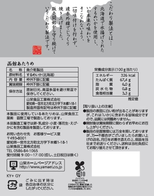北海道産産するめいかを薄味で味付けし、香ばしく焼きました。