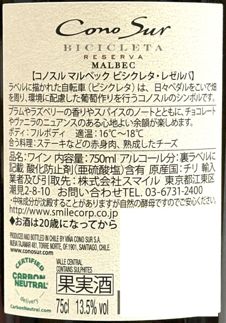 - 【体験コメント募集】コノスル マルベック ビシクレタ・レゼルバ 750ml