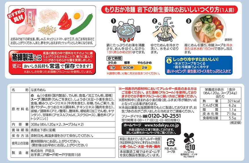 - 戸田久 もりおか冷麺岩下の新生姜味2人前 スープ付 308g×5袋