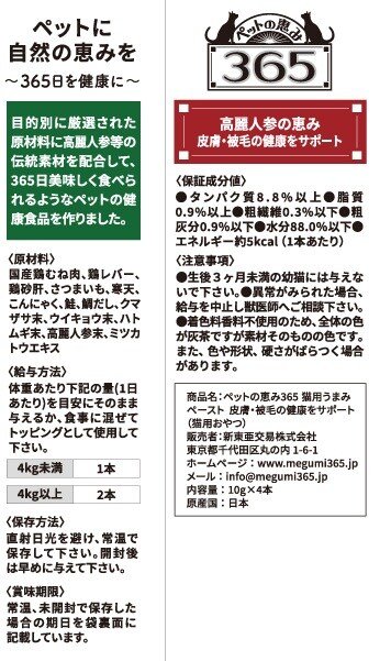 - ペットの恵み365 猫用うまみペースト 皮膚・被毛の健康をサポート 10gx4本入