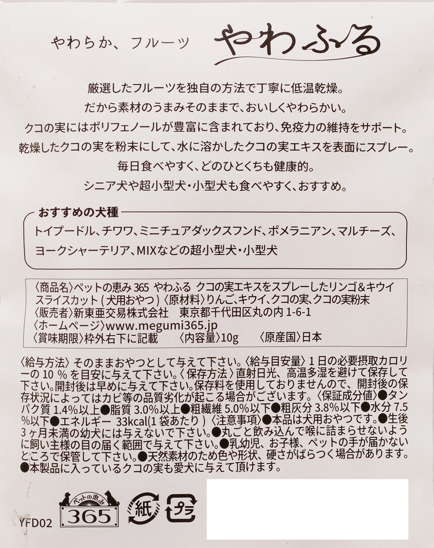 - ペットの恵み365 やわふる クコの実エキスをスプレーしたリンゴ&キウイスライスカット 10g