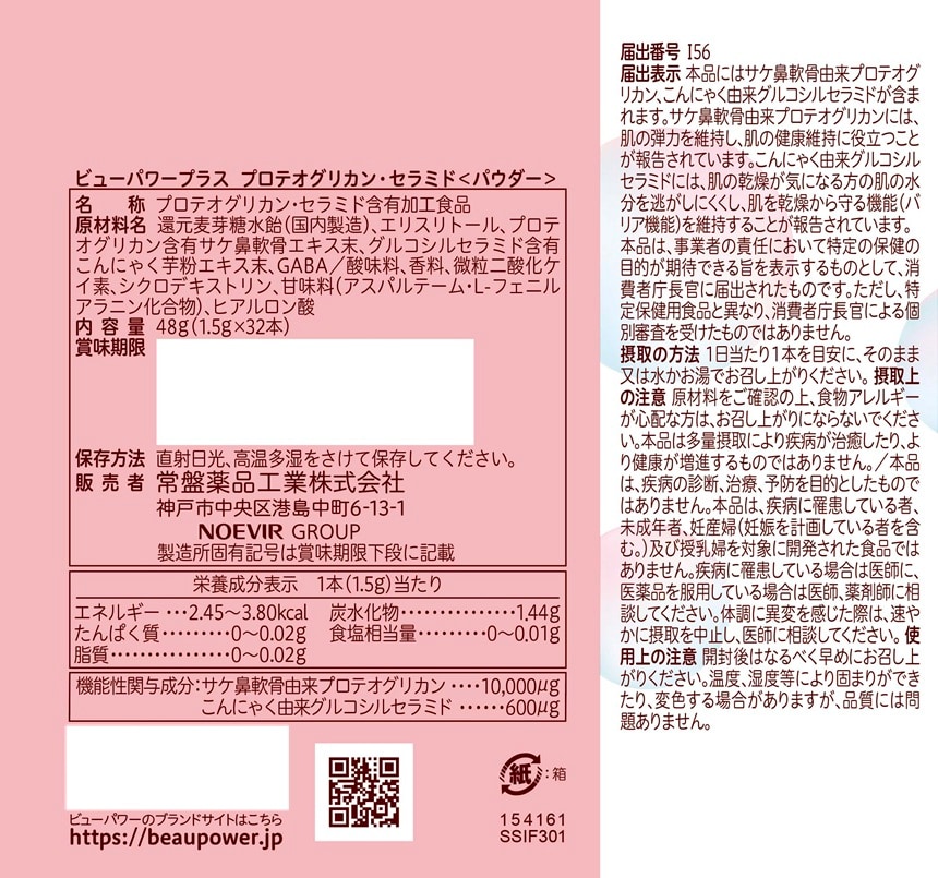 - 【機能性表示食品】ビューパワープラス プロテオグリカン・セラミド<パウダー> 32本入