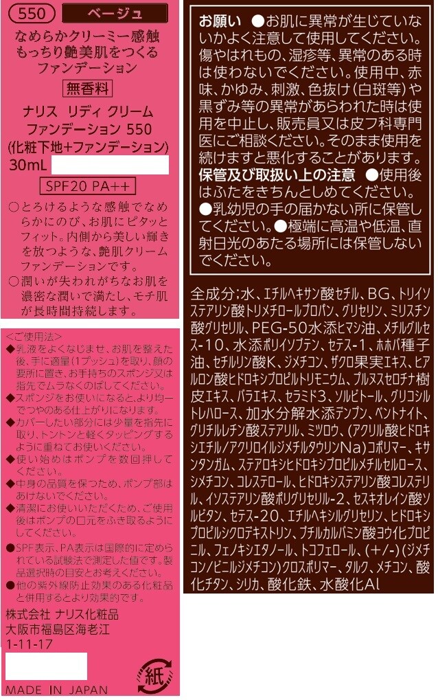 - リディ クリーム ファンデーション 550 ベージュ 30mL