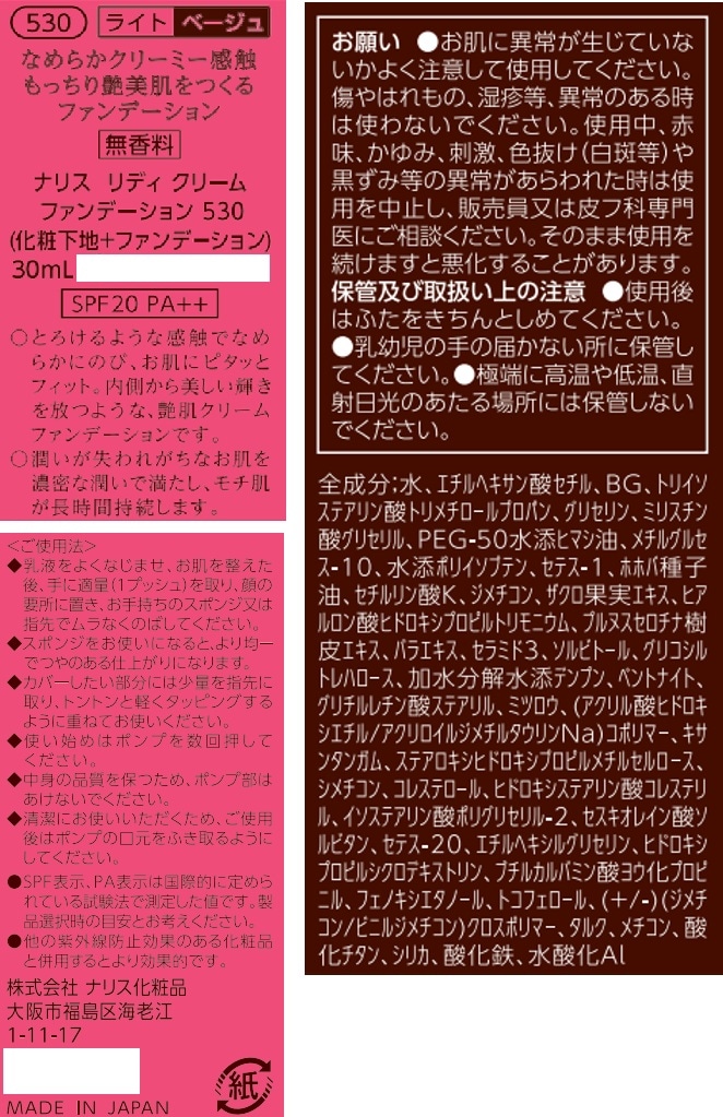 - リディ クリーム ファンデーション 530 ライトベージュ 30mL