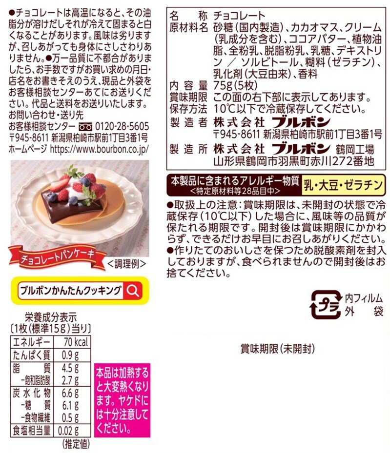 - [冷蔵]ブルボン スライス生チョコレート 5枚入×6個
