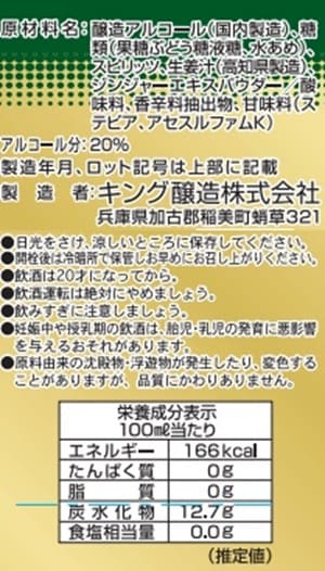 高知県産生姜汁を100%使用した、アルコール分20度のサワーの素です。