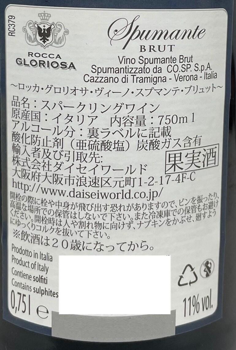 - ロッカ・グロリオサ ヴィーノ・スプマンテ・ブリュット 750ml