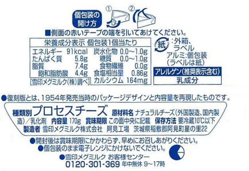 創業100周年を記念する期間限定商品。発売当時(1954年)のなつかしい厚みが楽しめる170gの「6Pチーズ」です。