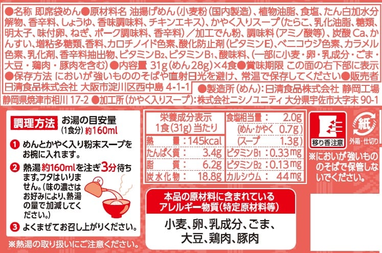 味噌汁(みそ汁)・スープの代わり食べられる具付きインスタントラーメン。