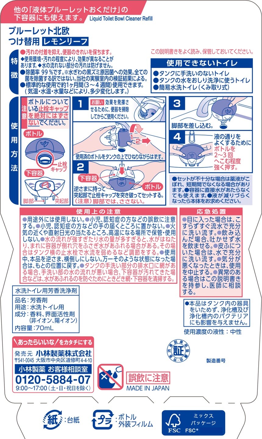- 液体ブルーレット除菌 北欧 つけ替用 レモンリーフの香り 70ml