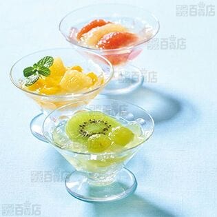 レモン果汁のゼリー液にキウイ・ぶどう・グレープフルーツ(2種)・マンゴー・パインを掛け合わせ、甘すぎない大人なゼリーに。