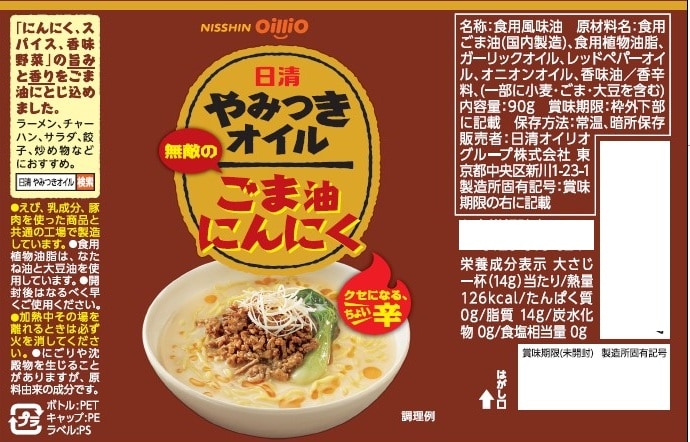 - ・日清やみつきオイル ごま油にんにく 90g×15本