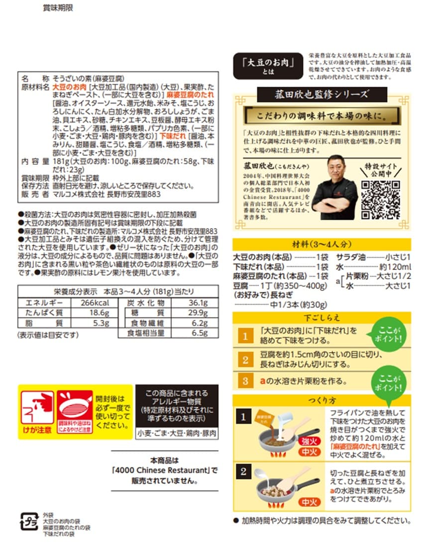 - 181g(大豆のお肉:100g、麻婆豆腐のたれ:58g、下味だれ:23g)×10個