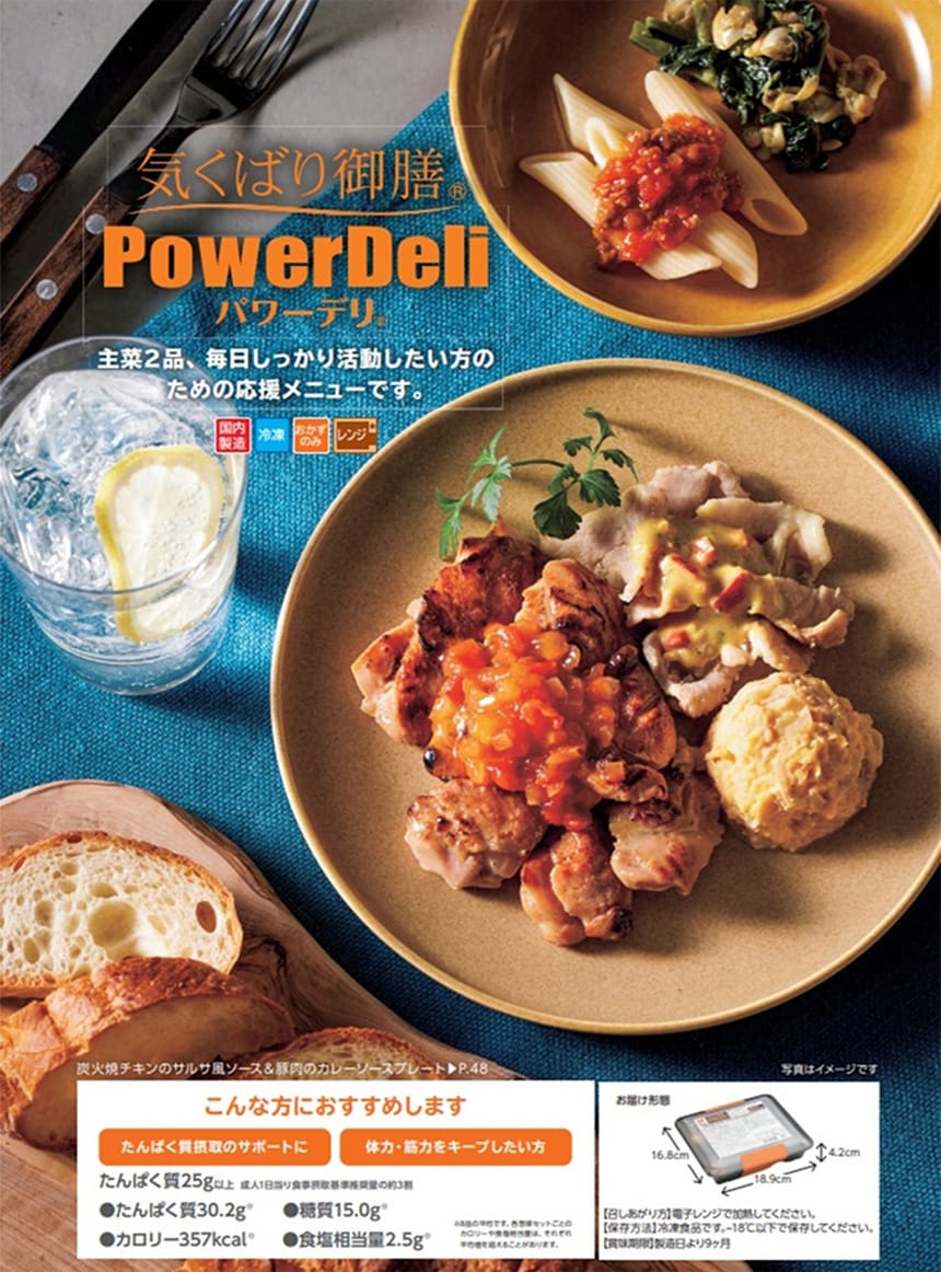 - [冷凍]ニチレイフーズ 気くばり御膳PowerDeli 炭火焼チキンのサルサ風ソース&豚肉のカレーソースプレート 240g×5個