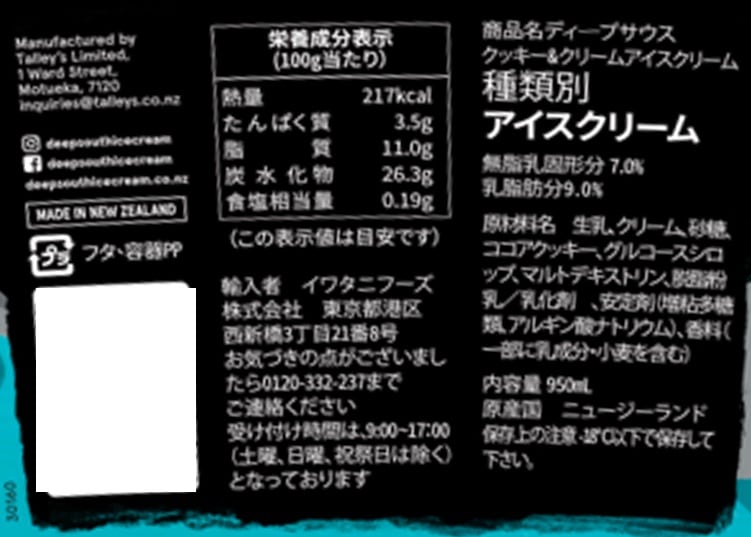- [冷凍]イワタニフーズ DEEP SOUTH クッキー&クリーム 950ml×3個