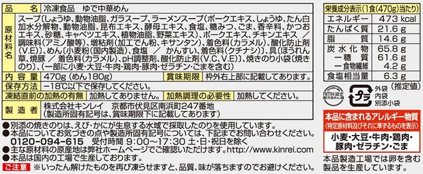 - [冷凍]キンレイ お水がいらない横浜家系ラーメン 1食入×6袋