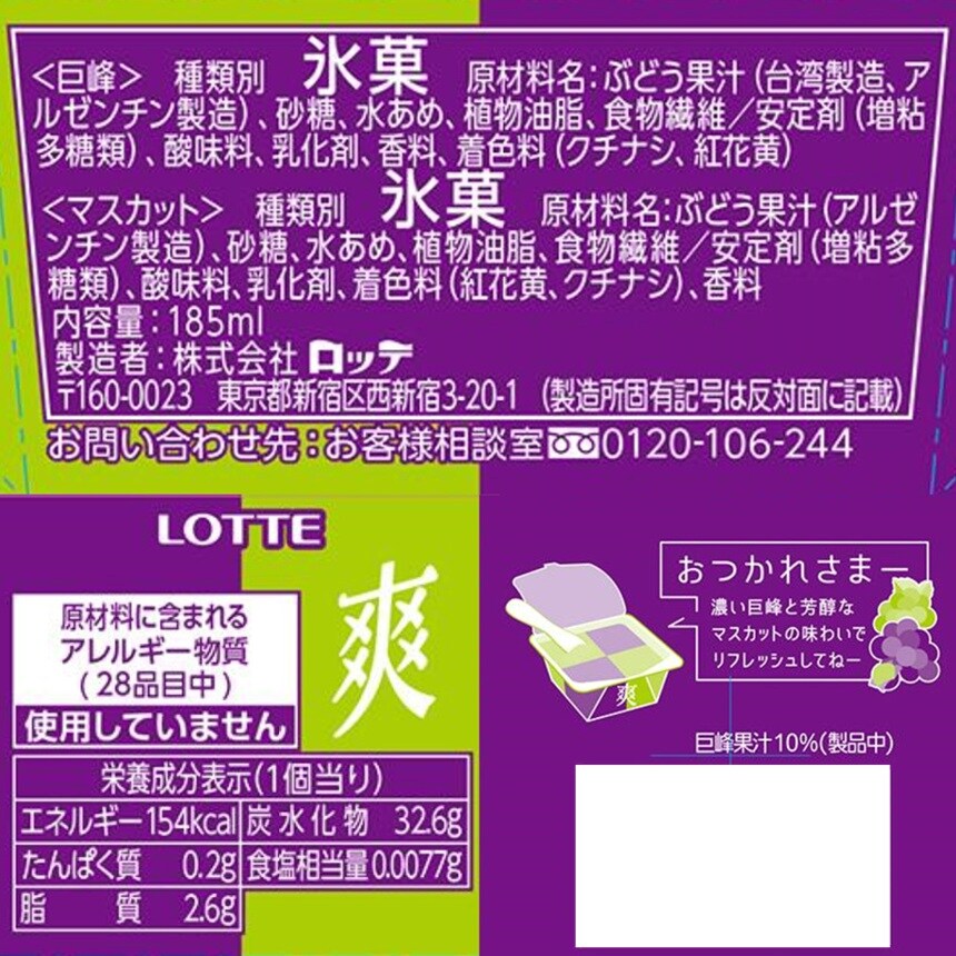 - [冷凍]ロッテ 爽 巨峰&マスカット 185ml×6個