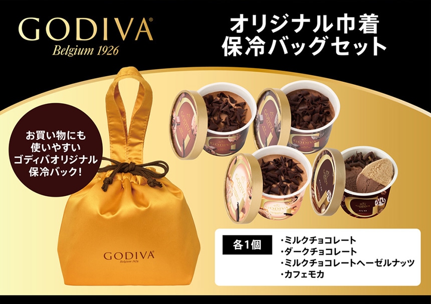 [冷凍]ゴディバ オリジナル巾着保冷バッグセット (90ml×4個) ×2セット | ゴディバロゴ入りのオリジナル巾着保冷バッグにバラエティ豊かに詰め合わせました。