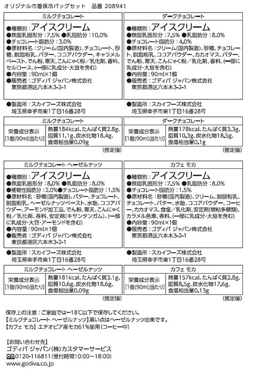 - [冷凍]ゴディバ オリジナル巾着保冷バッグセット (90ml×4個) ×2セット