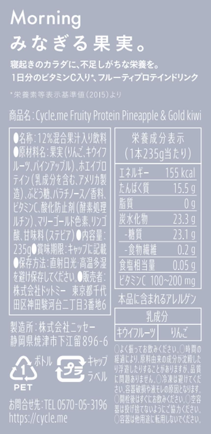 [2種計24本]ドットミー フルーティプロテイン 2種(パイナップル&ゴールドキウイ/グレープ) | タンパク質15gが摂れるプロテインドリンク2種セット