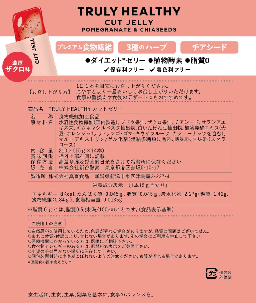 [8個]新谷酵素 トゥルーリーヘルシー カットゼリー 濃厚ザクロ味 14本入 | 食後のゼリーでカロリーカット!食べることへの罪悪感を払拭し、チアシード配合で満腹感もUP!