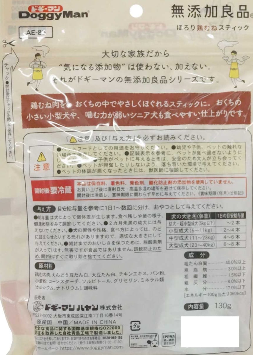 [18個]ドギーマンハヤシ 無添加良品 ほろり鶏むねスティック 130g | 鶏むね肉がほろほろとおくちの中でやさしくほぐれるスティック