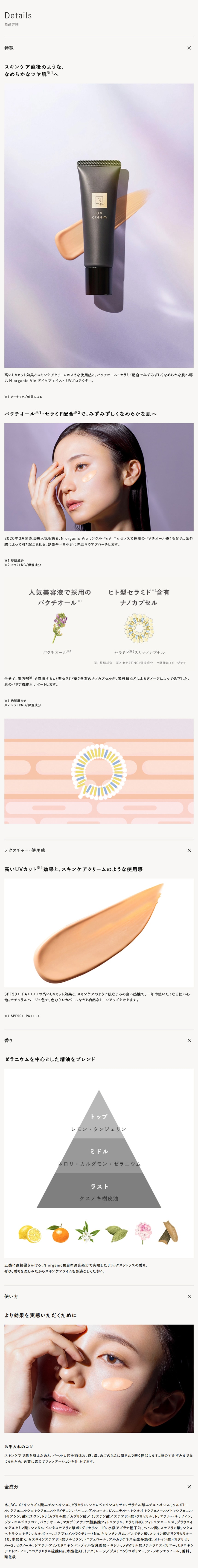 高いUVカット効果とスキンケアクリームのような使用感と、バクチオール・セラミド配合でみずみずしくなめらかな肌へ導く、N organic Vie デイケアモイスト UVプロテクター。