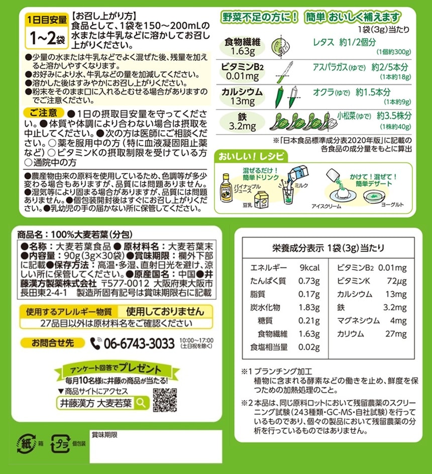 - 100%大麦若葉(分包) 90g(3g×30袋)