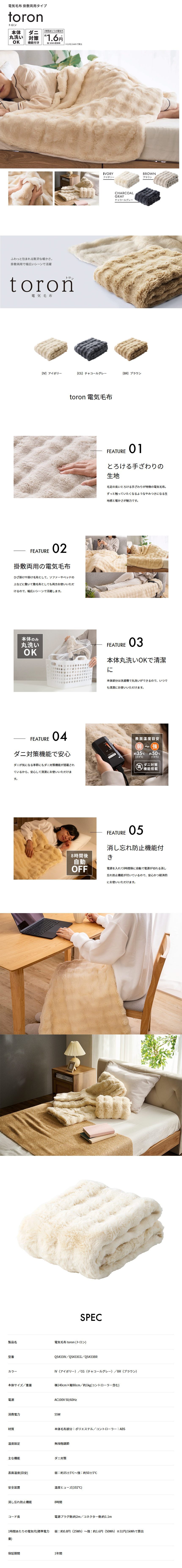 【アイボリー】クワッズ/電気毛布「トロン」(無段階調整/ダニ対策機能/消し忘れ防止機能)|掛敷両用で幅広いシーンで活躍!ずっと触っていたくなるような、とろける手ざわりの生地と暖かさを。