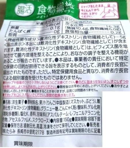 - 【機能性表示食品】FRUIT ENERGY 腸活 食物繊維 ぶどう&マスカットゼリー 150g