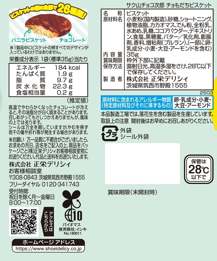 チョコ次郎のかわいいオリジナルシールが入ったチョコビスケット