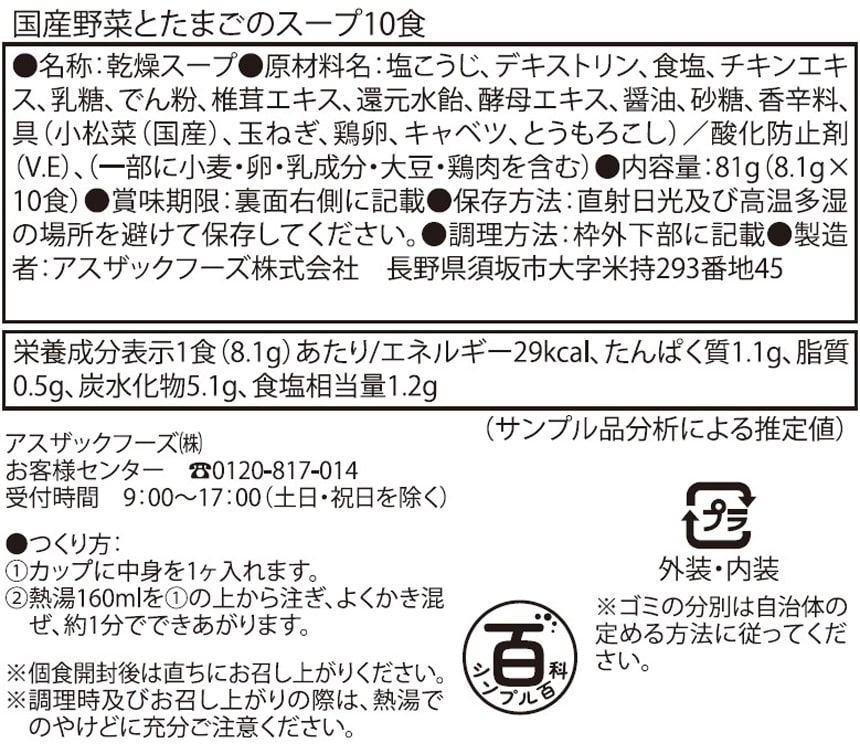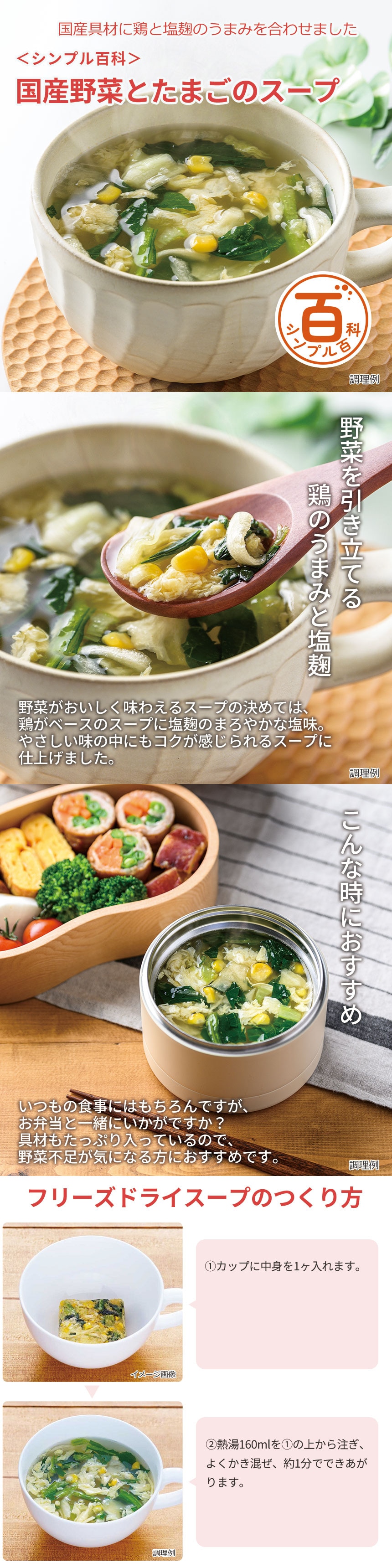 [計40食]<シンプル百科>国産野菜とたまご 81g(8.1g×10食)×4袋 | 鶏と塩麹で素材のうまみを引き出しました。ふわふわたまごと合わせて仕上げたフリーズドライスープ