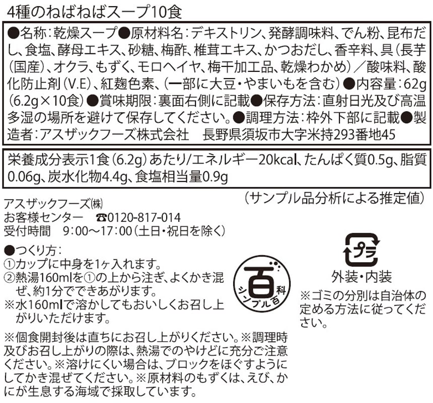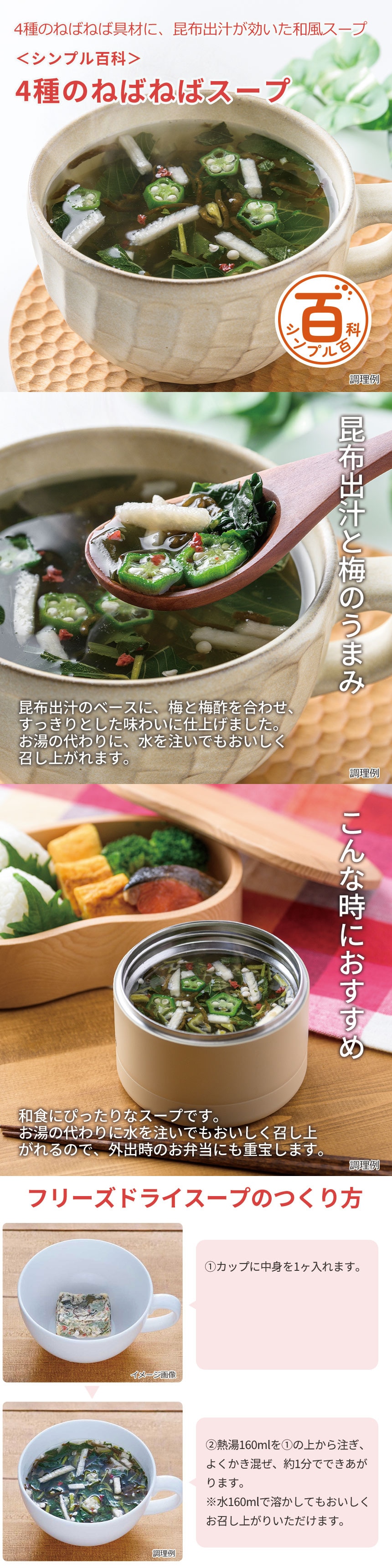 [計80食]<シンプル百科>4種のねばねばスープ 62g(6.2g×10食)×8袋 | 4種のねばねば具材に、昆布出汁が効いた具材たっぷりな和風のフリーズドライスープ。