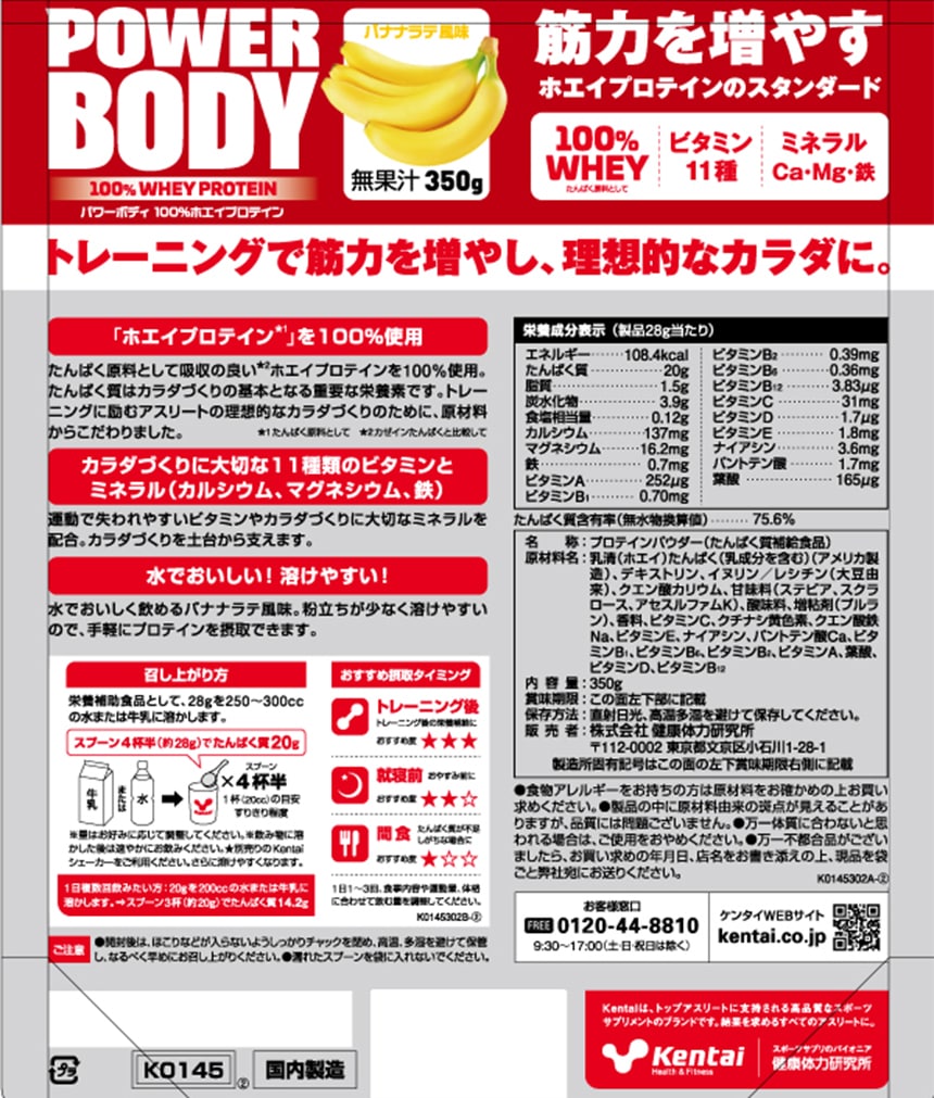 - パワーボディ100%ホエイプロテイン バナナラテ風味 350g
