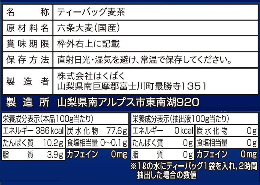 [12個]はくばく 水出しでおいしい麦茶 2袋増量品 (18袋入+2袋) | 水出しでも煮出しに匹敵するほど香り高く、深みのある味わいが楽しめる黄金色の麦茶。