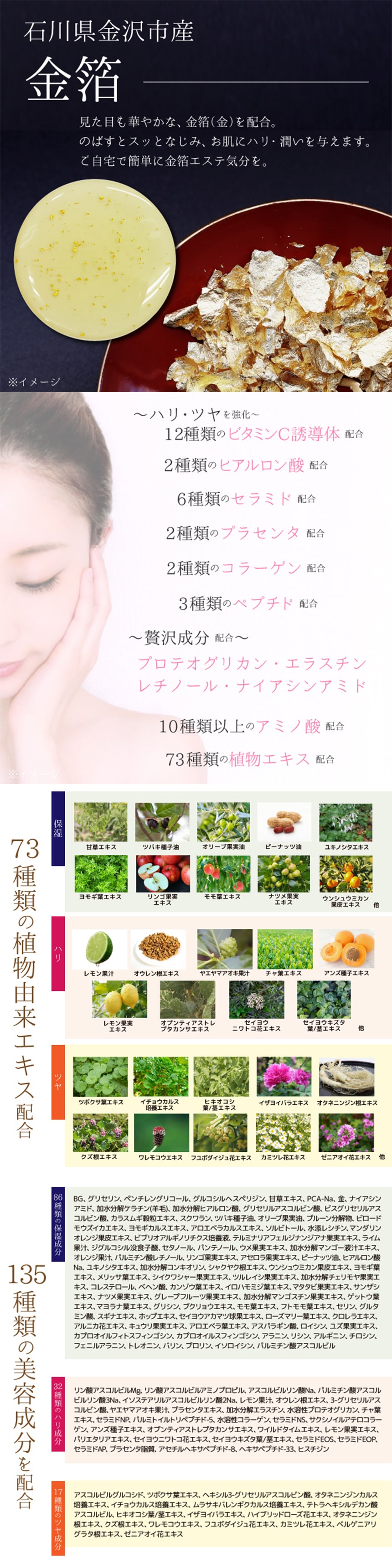 ご自宅で簡単に金箔エステ気分が楽しめます。