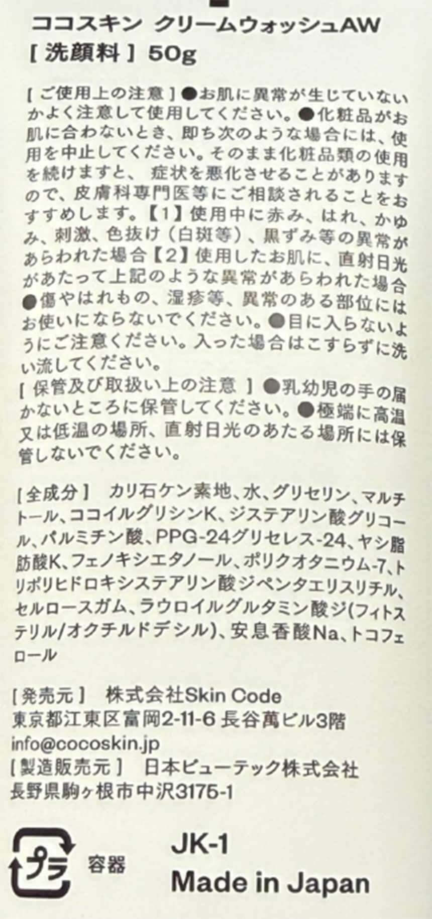 [3個]Skin Code COCO.skin フェイスウォッシュAW 50g | 不要な汚れはしっかり落として必要なうるおいは残す、スキンケア前の肌を整える洗顔。