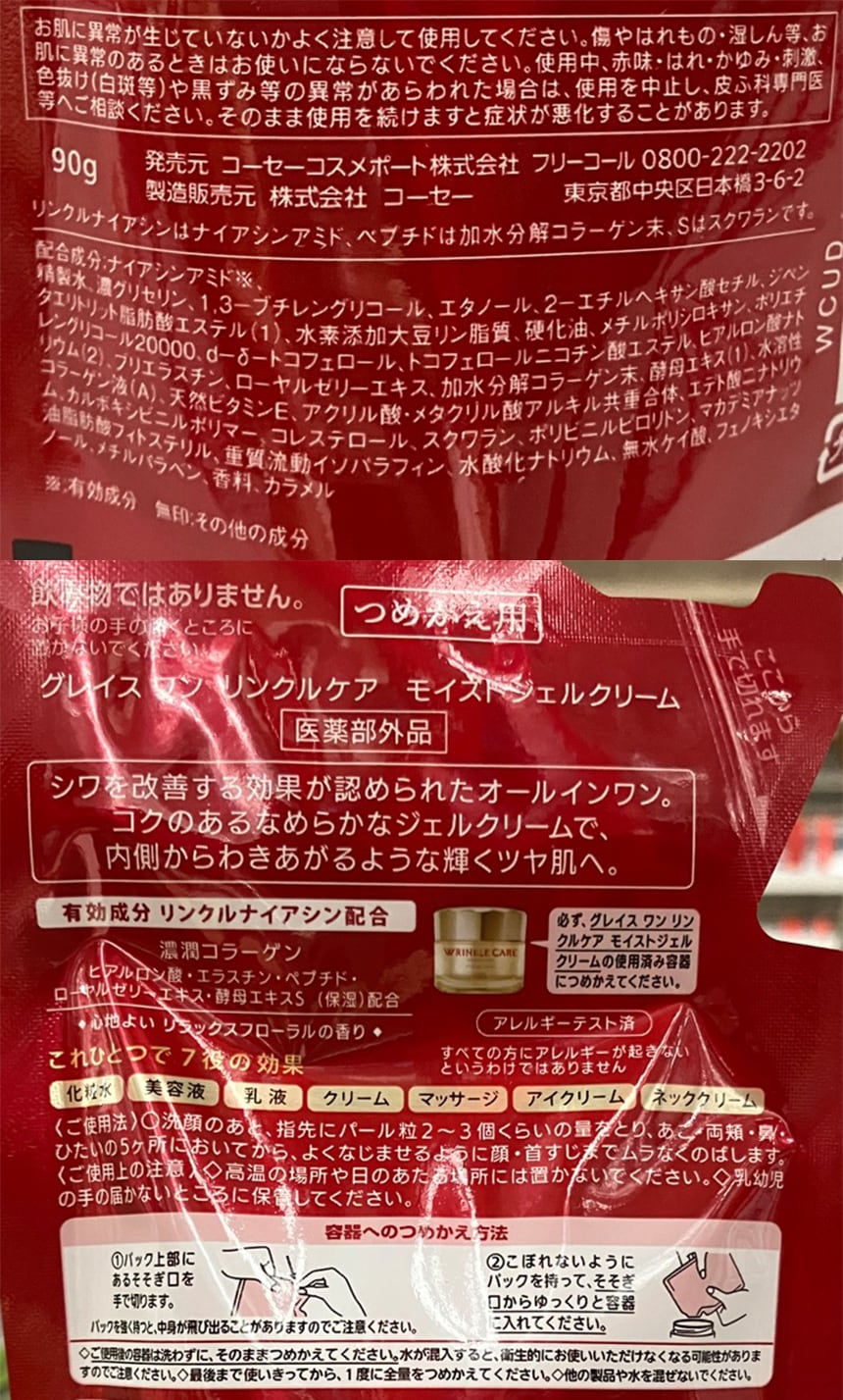 [3個]【医薬部外品】 コーセーコスメポート グレイスワン リンクルケア モイストジェルクリーム つめかえ用 90g | シワ改善 高機能オールインワン