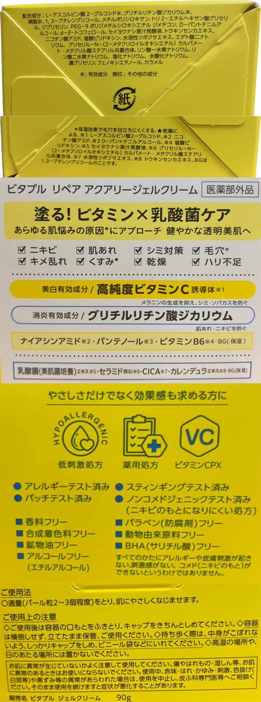 - 【医薬部外品】 薬用 ビタプル リペア アクアリージェルクリーム つけかえ用 90g
