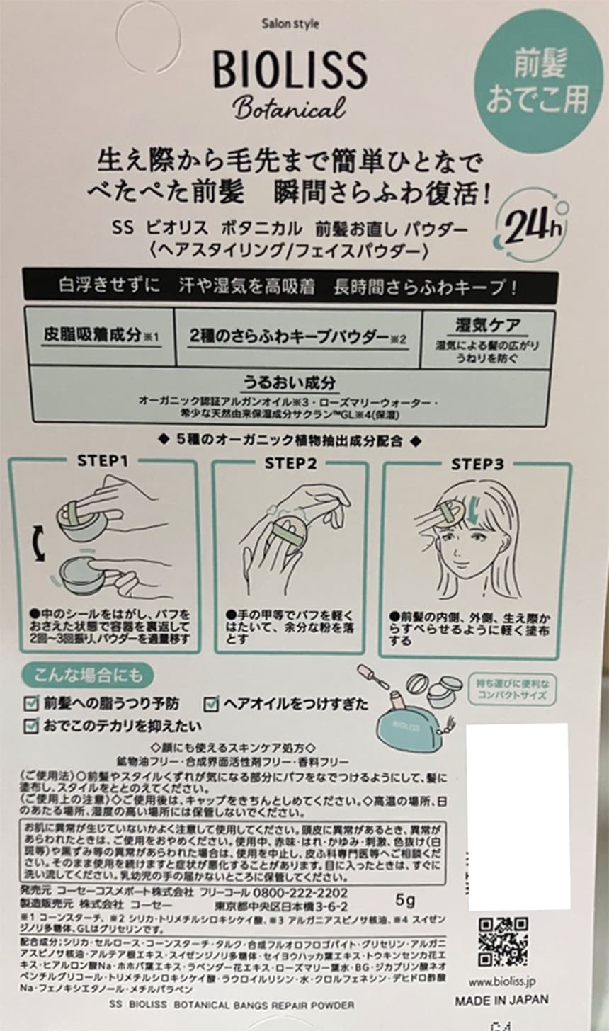 - SS ビオリス ボタニカル 前髪お直しパウダー ハンガーセット FO 5g×6個入