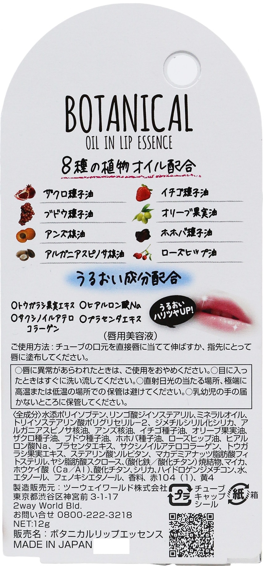 通常の保湿リップにプランパー効果がある植物性オイルリップです。8種類もの植物オイルと保湿成分としてヒアルロン酸・コラーゲン・プラセンタエキスを配合し、1度塗ったらなかなか乾かないほど保湿力をUPしました。プランパーとしてもご使用頂けるように、トウガラシエキスを配合し、柔らかくぷっくりとしながらツヤツヤな唇に。口紅やグロスいらずのオイルリップです。