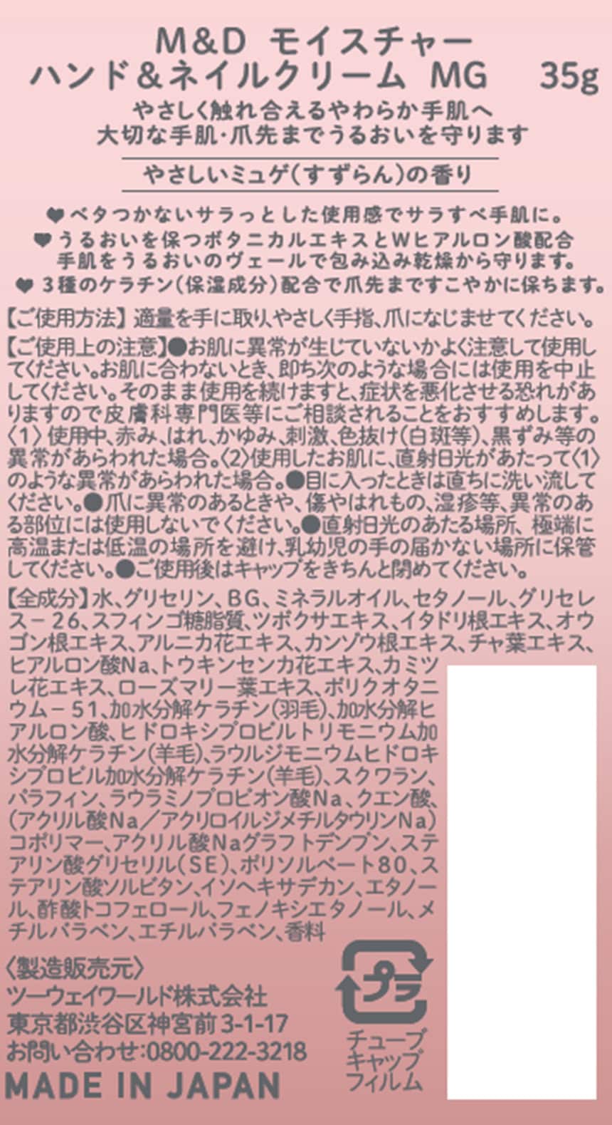 - M&D モイスチャーハンド&ネイルクリーム ( ピーチ・ジャスミン 35g / ミュゲ 35g )