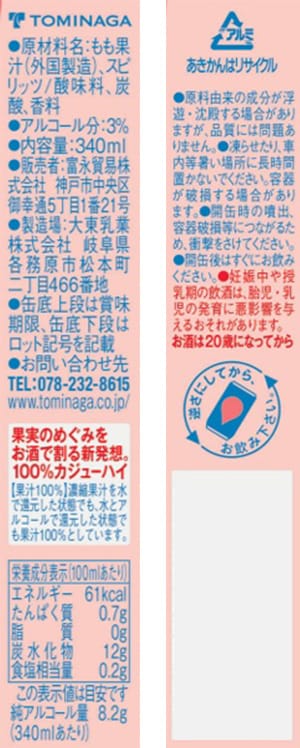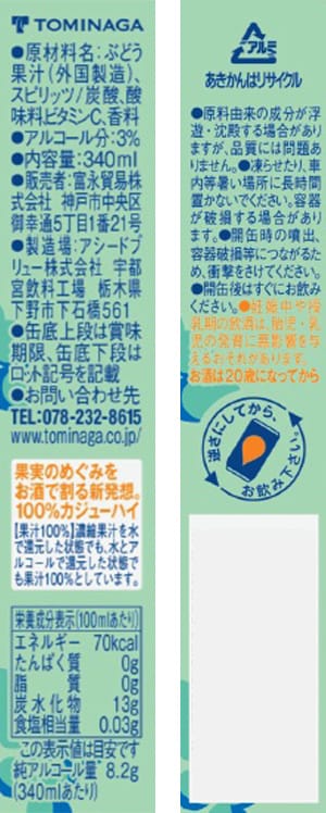 アルコール分3%のリラックスできる程よいアルコール感が特徴です。