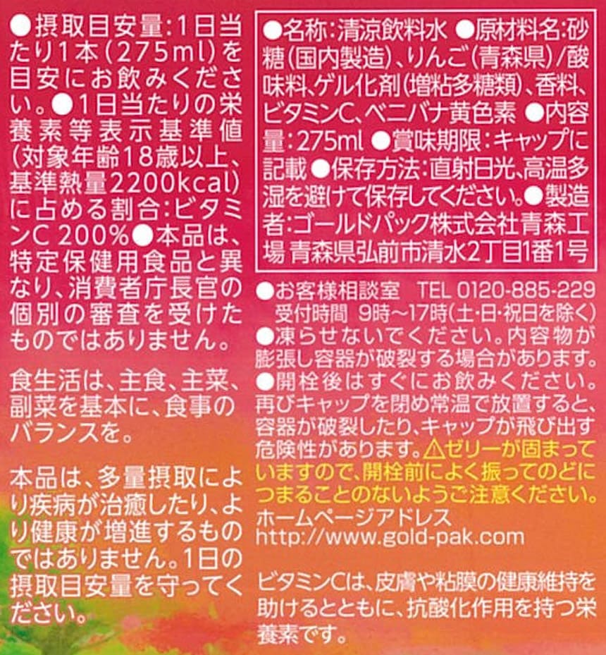 子どもの好む果物を厳選。青森県産のりんごを丸ごと搾った果汁を使用した飲むゼリー飲料です。