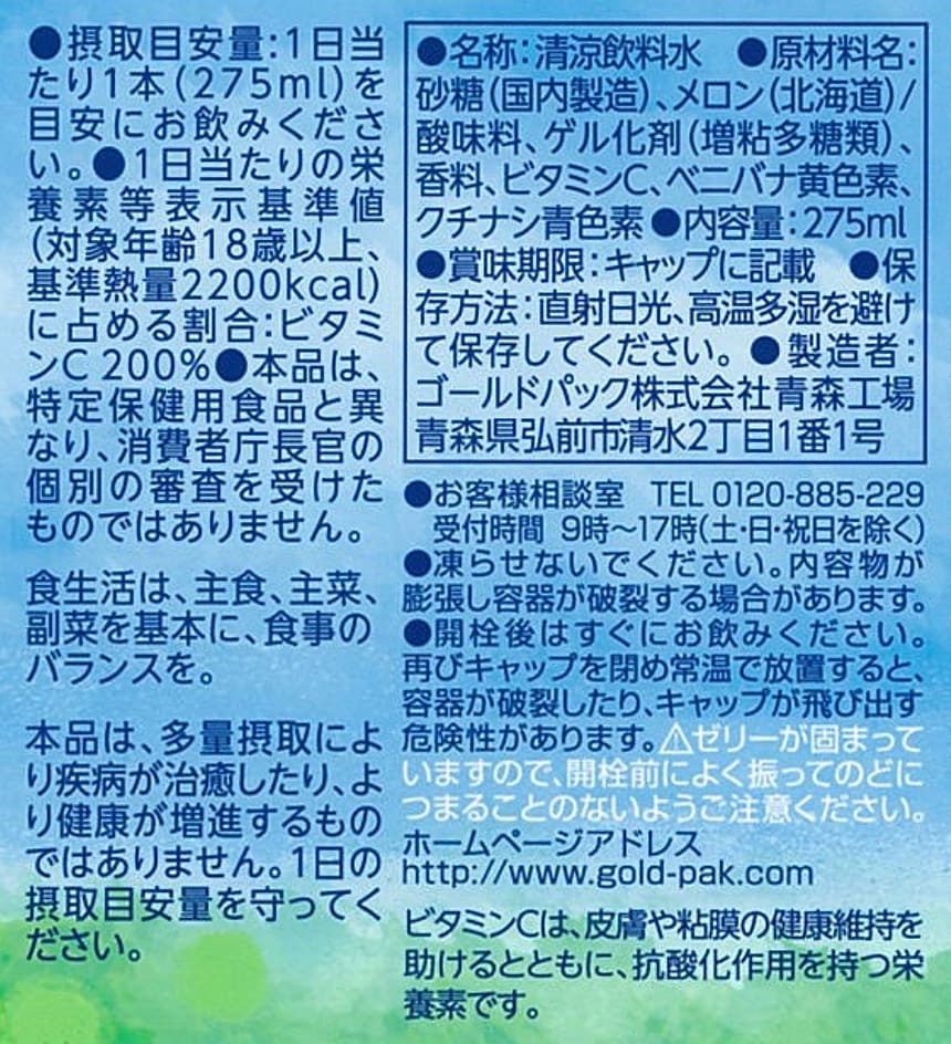 [48本]ゴールドパック 北海道メロンジュレ 275ml |...2754円(57.4円/本) -