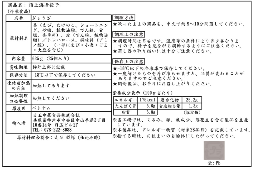 大きいサイズの海老を贅沢に包み込んだ高級感のある海老餃子です。