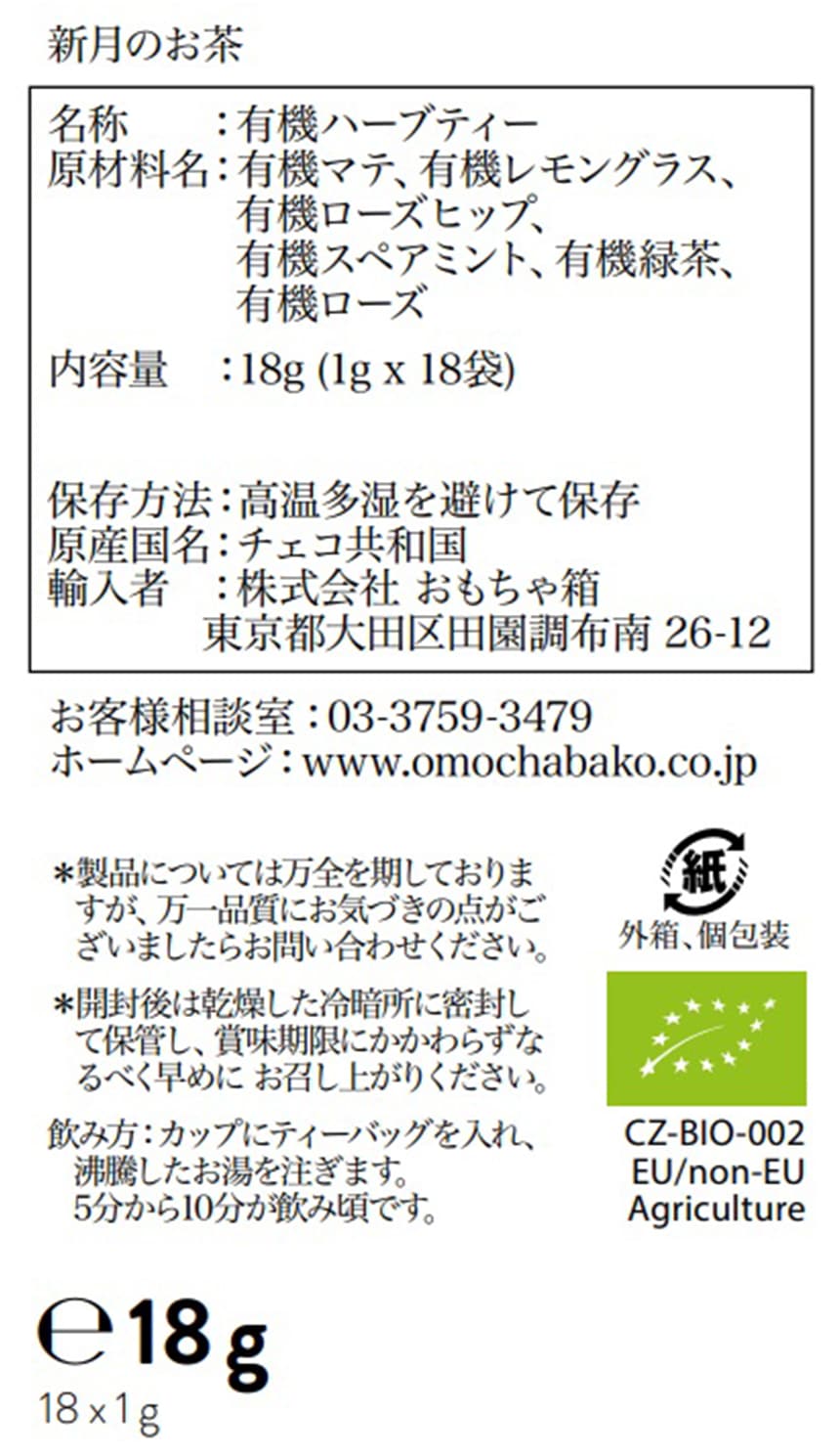 - ゾネントア 有機ハーブティー 新月のお茶 18袋入