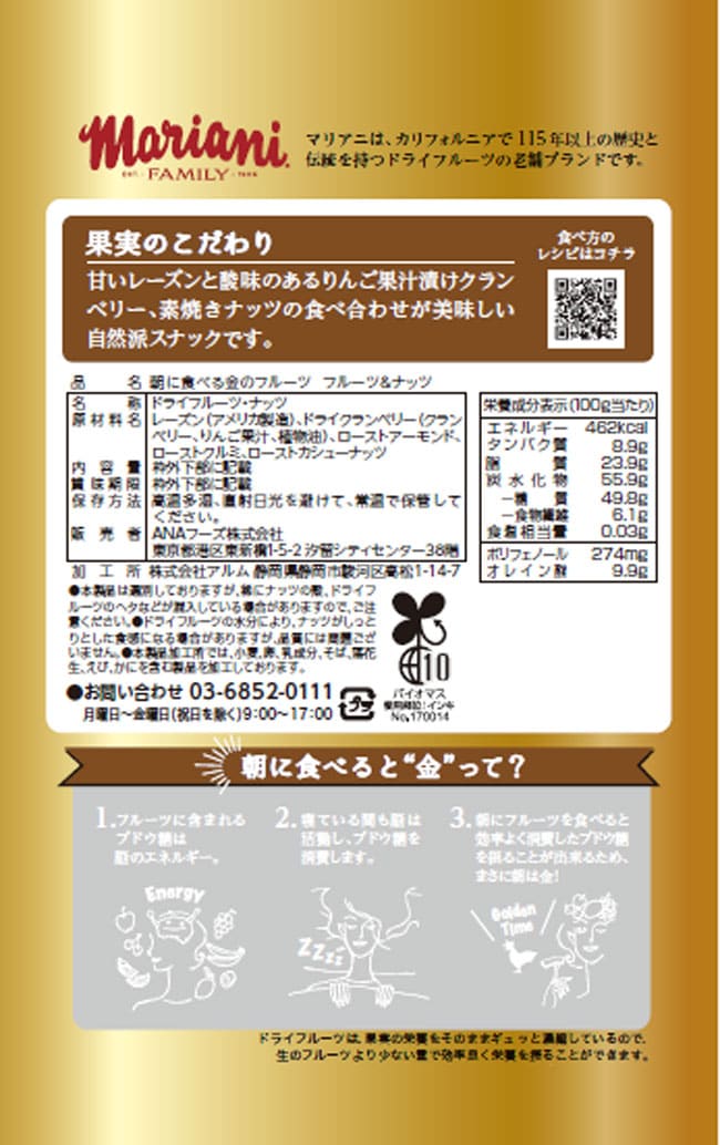 - 朝に食べる金のフルーツ フルーツ&ナッツ 90g