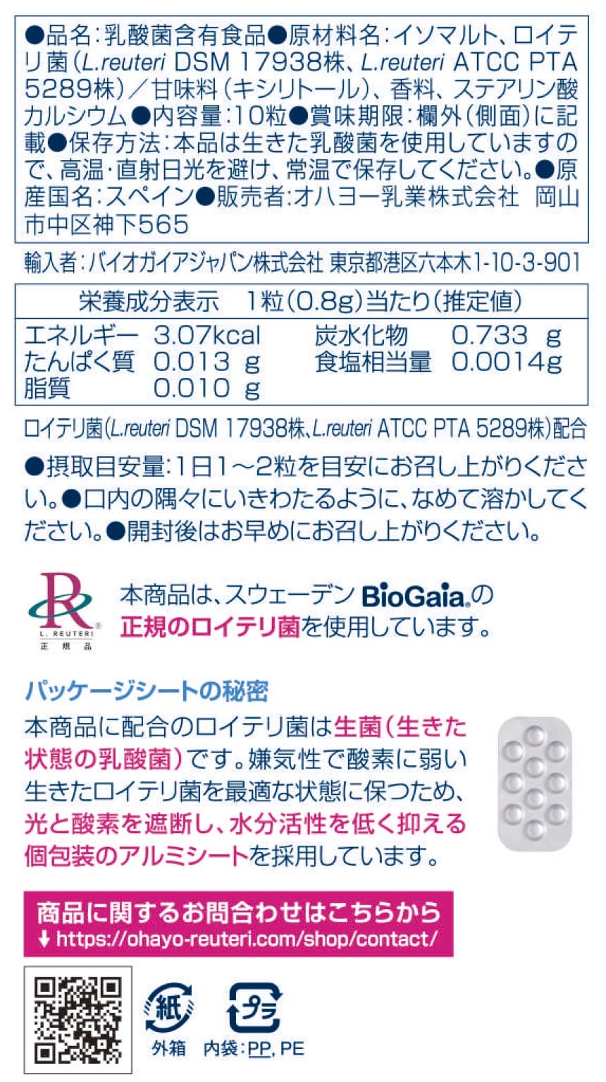 - ロイテリ 乳酸菌サプリメントBasic Guard 10粒 (1粒あたり0.8g)