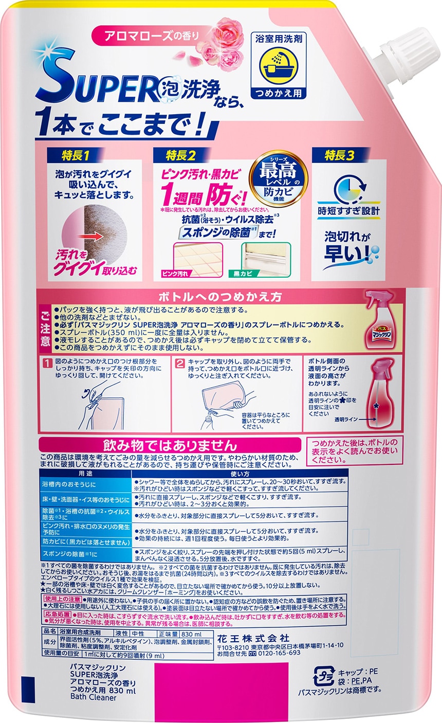 - バスマジックリン SUPER泡洗浄 アロマローズの香り つめかえ用増量 830ml
